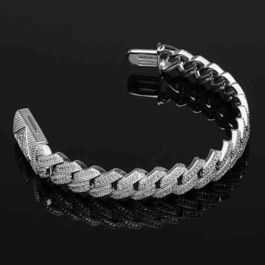 S925 Silver 12mm Classic Trapezoidal Cuban Bracelet