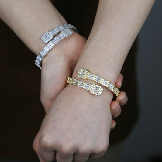 Rectangular Diamond Open Hip Hop Bangle Bracelet