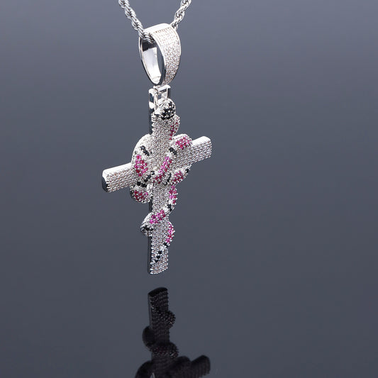 Pink Viper Wrap Cross Pendant