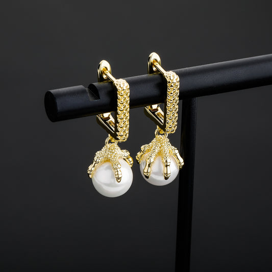 Square Hoop Dragon Claw Pearl Earrings