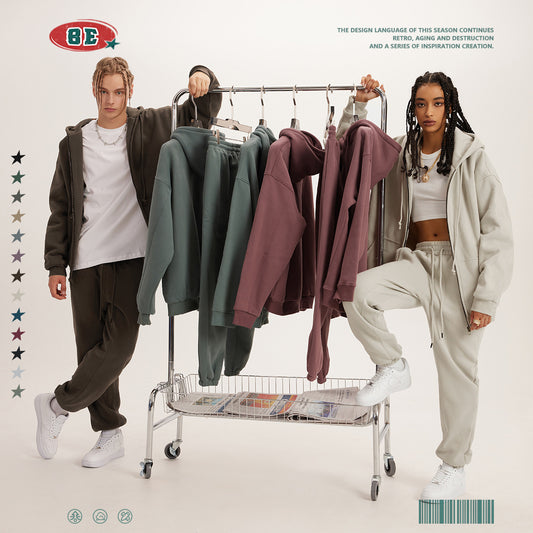 Hip-hop Thick Solid Color American Style Zipper Sweater Blank Shirt Loose Jacket