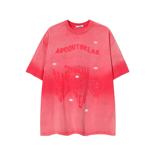 Dopamine Couple all-match Retro Gradient Wash Short-sleeved T-shirt