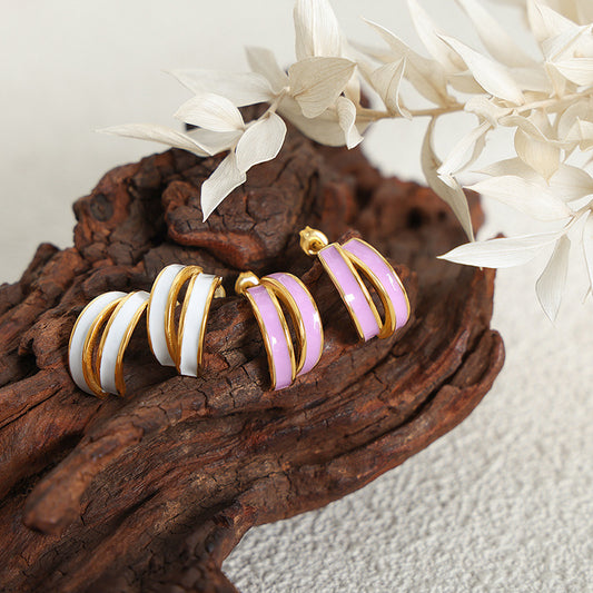 Dopamine Candy Color Drop Oil All-Match Titanium Steel 18K Gold Earrings