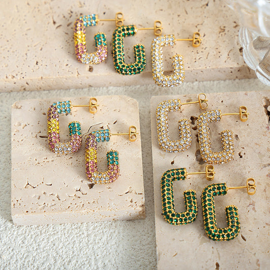 Dopamine Hip Hop 18K Gold Earrings with Czech Diamonds