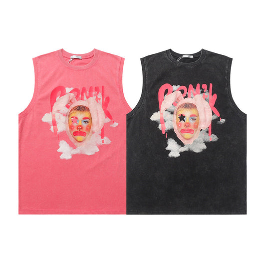 Dopamine Washed Old Retro Clown Vest Couple Sleeveless T-Shirt
